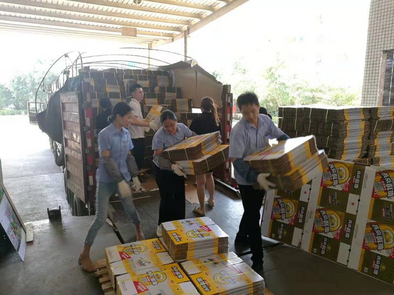 成品倉,不得了,出貨百萬輕松搞,穿著紅馬甲的就是儲(chǔ)運(yùn)部的兄弟們。拉著兩板貨,輕車熟路,很快就裝滿一輛車。在悶熱的車廂里,他們不怕苦不怕累,一捆捆紙箱堆放得整整齊齊。正是他們,保證了旺季出貨的順暢,保證了日出百萬箱的能力。