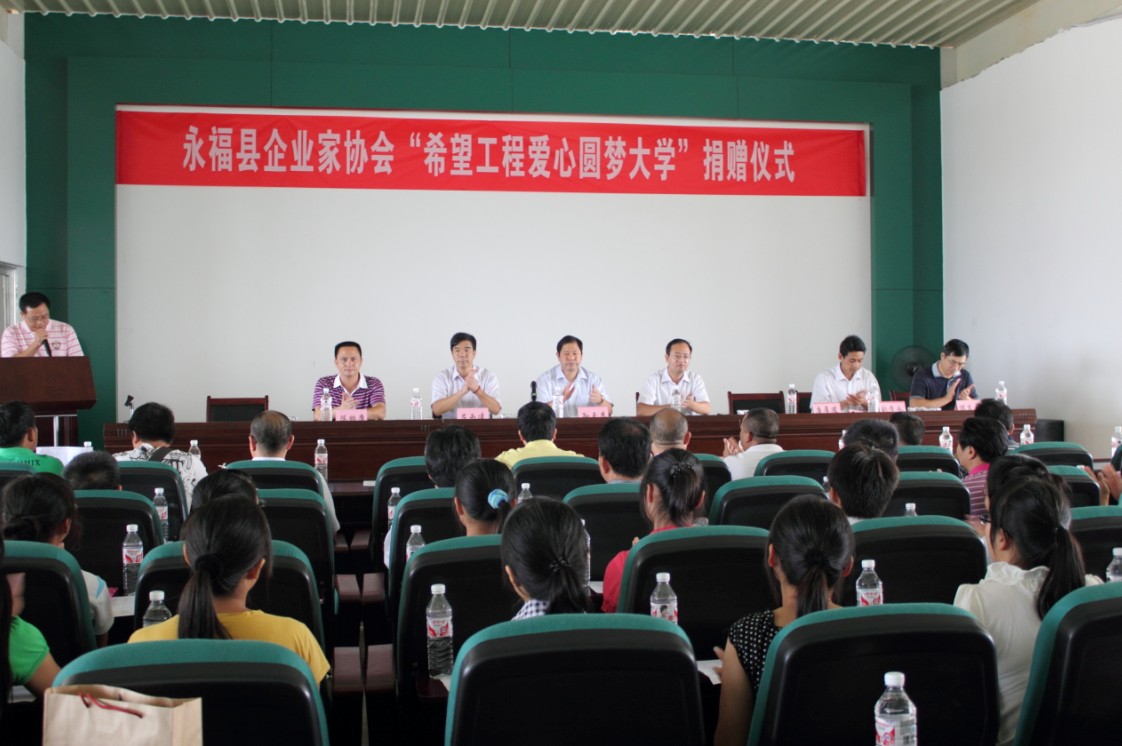 扶危濟困,扶困助學(xué),是我們中華民族的傳統(tǒng)美德,企業(yè)的發(fā)展也承載著一定的社會責(zé)任。我司作為企業(yè)代表,積極的響應(yīng)縣領(lǐng)導(dǎo)的號召,向這些品學(xué)兼優(yōu)的學(xué)生伸出關(guān)愛之手。本次活動的參加者有縣領(lǐng)導(dǎo)、縣工信局黨政領(lǐng)導(dǎo)及縣委班子成員,首先由縣委書記劉學(xué)永宣讀“希望工程愛心圓夢大學(xué)”倡議書,其次由各位企業(yè)家為貧困大學(xué)生捐贈助學(xué)金及譚董事長代表企業(yè)家發(fā)言,最后是受助大學(xué)生代表發(fā)言,在副縣長的宣布下結(jié)束。